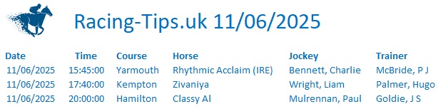 21/09/25 Posted on September 21, 2025 by racing-tips.uk RaceHorse15:07 SouthwellDutch Decoy15:50 PlumptonAucunrisque16:43 HamiltonImpressor