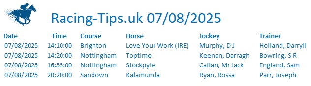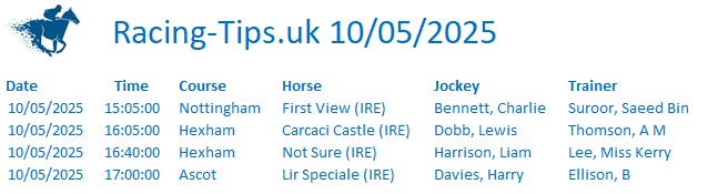 08/10/25 Posted on October 7, 2025October 7, 2025 by racing-tips.uk RaceHorse15:58″ “NottinghamMetabolt